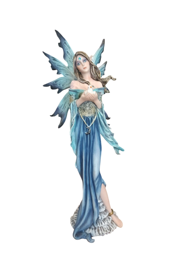 Questa deliziosa Fata della Pace, ispirata alle magiche atmosfere delle Alpi, è realizzata in resina dipinta a mano con cura artigianale. Alta 24 cm, porta un tocco di serenità e incanto ovunque venga posizionata. Perfetta per chi ama aggiungere un pizzico di magia e tranquillità alla propria casa o collezione. Nota: questo modello è fuori produzione, rendendola un pezzo unico da custodire con affetto!