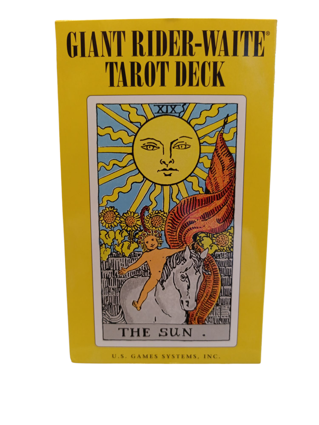 Rider-Waite Tarot ha stabilito lo standard per centinaia di altri mazzi di tarocchi, che seguono le immagini archetipiche create da Pamela Colman Smith nel 1909. I suoi vivaci disegni continuano ad attrarre gli amanti dei tarocchi, specialmente quelli che imparano il simbolismo dei tarocchi per la prima volta. Le immagini pittoriche complete su tutte le 78 carte consentono interpretazioni senza la necessità di consultare il libretto. Il Giant Rider-Waite Deck è particolarmente utile per i principianti in quanto possono facilmente osservare tutti i dettagli e connettersi profondamente con le immagini ingrandite dei tarocchi. Il Giant Rider Waite Deck incoraggia anche i lettori di tarocchi a concentrarsi su una singola carta alla volta, esplorandone appieno i significati.