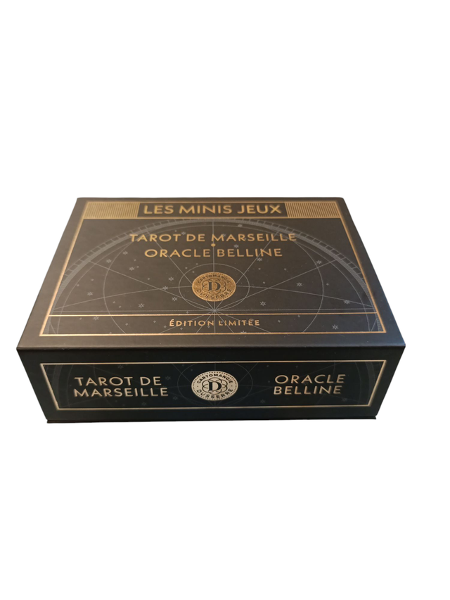 Immergiti nel mondo affascinante della cartomanzia con questa scatola da collezione di Dusserre. Presentata in edizione limitata, questa scatola in miniatura rende omaggio ai classici della divinazione francese con eleganza e raffinatezza. Il Tarot de Marseille, splendidamente ricolorato in tonalità pastello, rivisita questo gioco tradizionale con dolcezza e sottigliezza / L'Oracle Belline, famoso per i suoi simboli divinatori che combinano carte e astrologia, offre un approccio unico alla previsione e alla guida. * Lingua: Francese. * Dimensioni della scatola: 11,7 x 8,7 cm (5" x 3,9"). * Peso del mazzo (circa): 224 g. (0,5 lb). * Prodotto Fournier 100% autentico e originale.